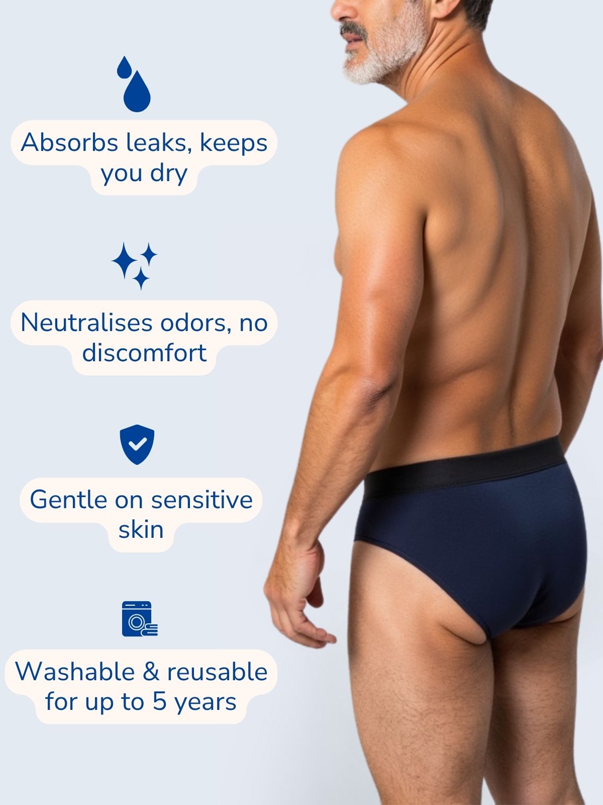Our men's ultra-absorbent incontinence briefs are specially designed to be reused for several years, lasting on average 3 to 5 years.