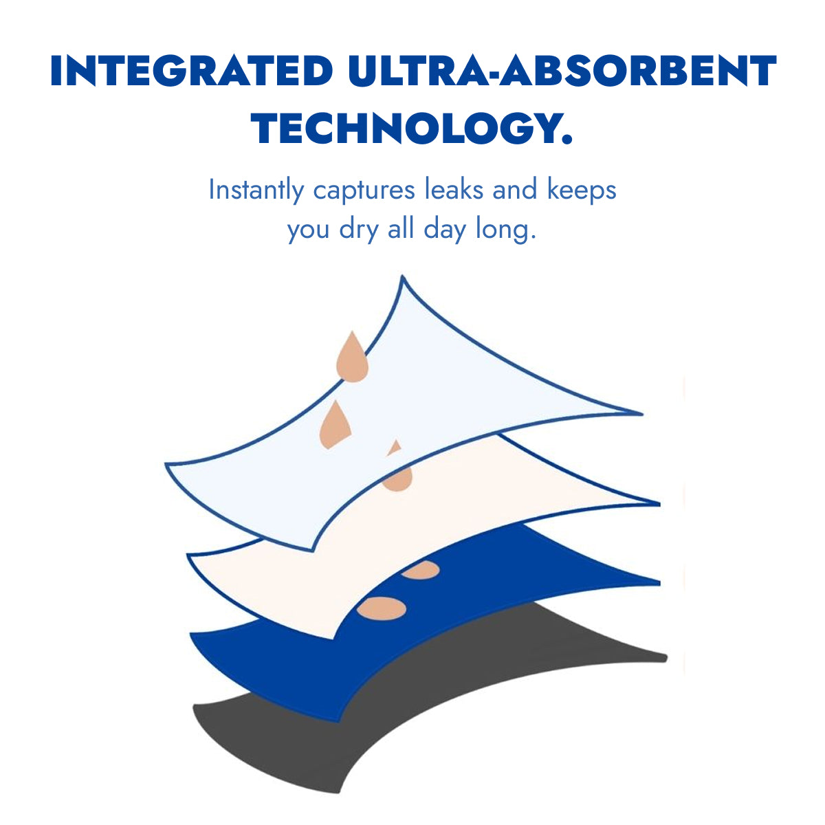 With moisture-wicking and odour-control layers, they keep you fresh and confident for up to 12 hours, with no dampness or discomfort.