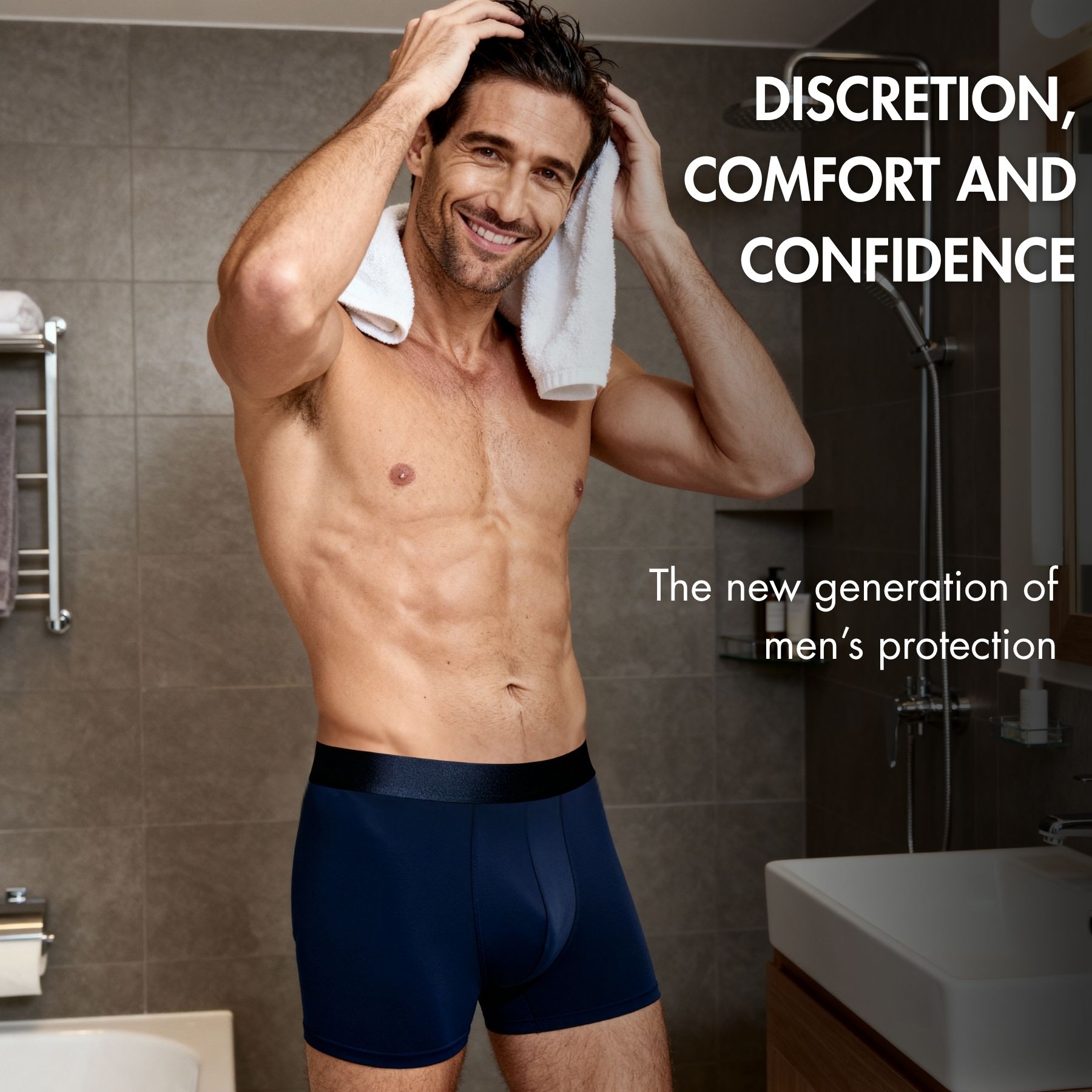 Discover the discreet, high-performance boxer trunks that keep you protected all day long.
